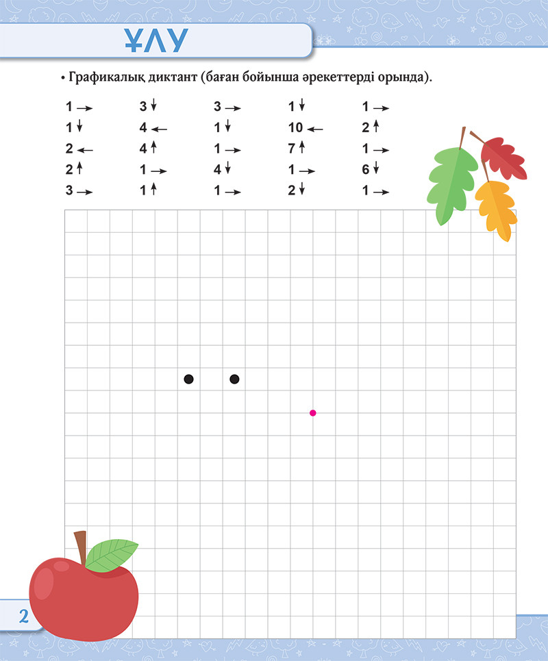 Қолымызды жазуға дайындаймыз. Мектепалды оқушыларға арналған графикалық жаттығулар. 4-6 жас. 1-деңгейВ данный момент этот товар отсутствует в продаже. Возможно, у нас найдется аналогичный или похожий товар здесь. Ұсынылып отырған оқу құралы — баланың қолын жазуға дайындауға арналған тренажер. Құралда мектепалды жастағы балалардың графикалық жазу дағдысын, ынтасы мен зейінін дамытуға бағытталған графикалық диктанттар мен басқа да тапсырмалардың қарапайым сызбасы берілген. Жаттығуларды қарындаштың көмегімен орындаған жөн, себебі қате кеткен артық сызықтарды өшіріп, тапсырманы қайтадан орындауға мүмкіндік болады. Графикалық диктанттағы сурет салу нүктеден басталады, ал көрсетілген әркеттер баған бойынша орындалады. Ересек адамның көмегімен немесе өз бетімен тор көздермен жылжи отырып, бала ереже бойынша әрекет етуге, кеңістікте бағдарлауға және мұғалімнің тапсырмасын түсінуге үйренеді. |