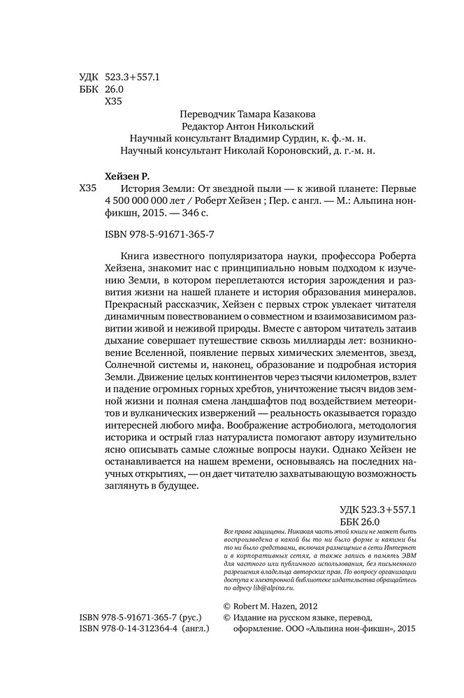 История Земли. От звездной пыли - к живой планете. Первые 4 500 000 000 летВ данный момент этот товар отсутствует в продаже. Возможно, у нас найдется аналогичный или похожий товар здесь. Хейзен приглашает нас в одно из самых грандиозных путешествий — историю нашей планеты длиной 4,5 млрд лет. С атомов земной коры начинается всё — наши тела, весь живой мир. Это захватывающая книга. |