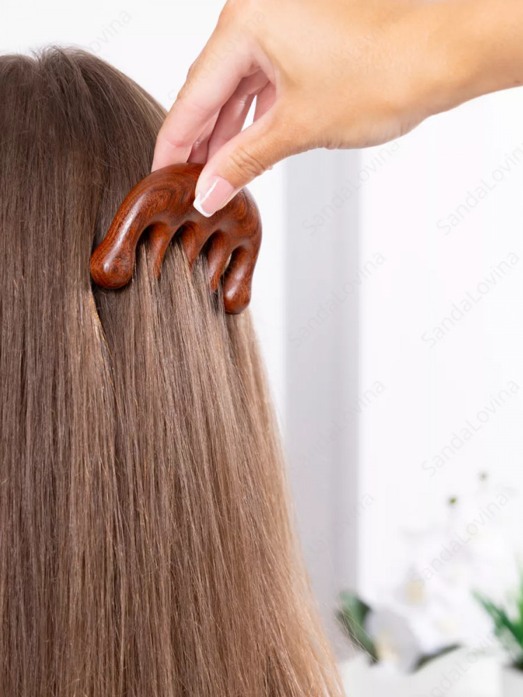 Идеальное средство для ухода за вашей кожей и волосами — массажный гребень гуаша из сандалового дерева! Этот инновационный инструмент сочетает в себе ненадежность традиционной гуаши и преимущества натурального сандалового дерева. Деревянная расческа массажер станет вашим надежным спутником в красоте и здоровье. Его плавные и изящные редкие зубья мягко массируют кожу, стимулируя кровообращение и улучшая микроциркуляцию. Это способствует более эффективному поступлению кислорода и питательных веществ в клетки, что приводит к улучшению цвета и текстуры кожи. А приятный тонкий аромат сандала успокаивает и снимает усталость. |