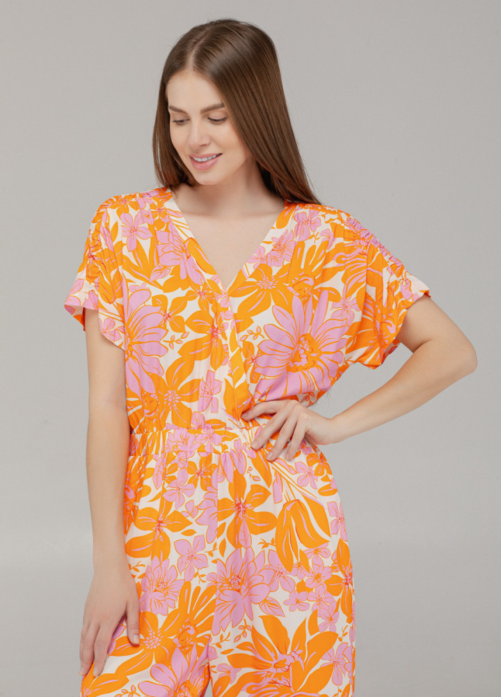 Комбинезон сочетает в себе элегантность и практичность, позволяя создать стильный образ без лишних усилий. Украшенный эффектным принтом, он подчеркнёт вашу фигуру благодаря продуманному крою и акценту на талии.