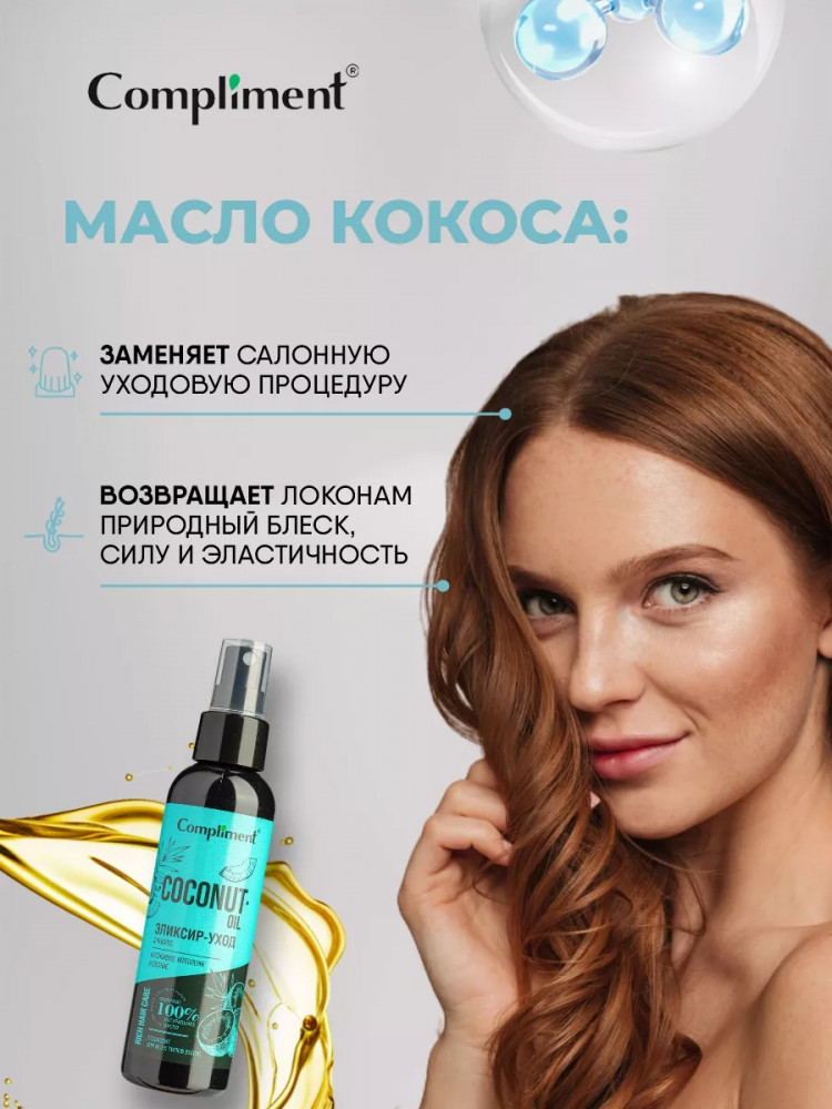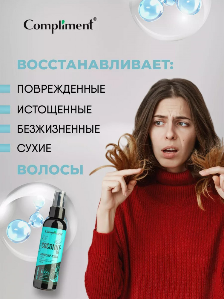 Compliment Эликсир-уход для волос «Coconut Oil. Интенсивное укрепление и питание»