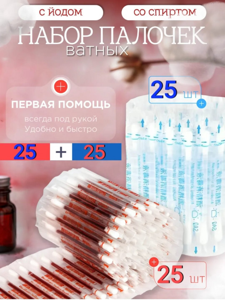 • ватные палочки со спиртом — 25 шт.;