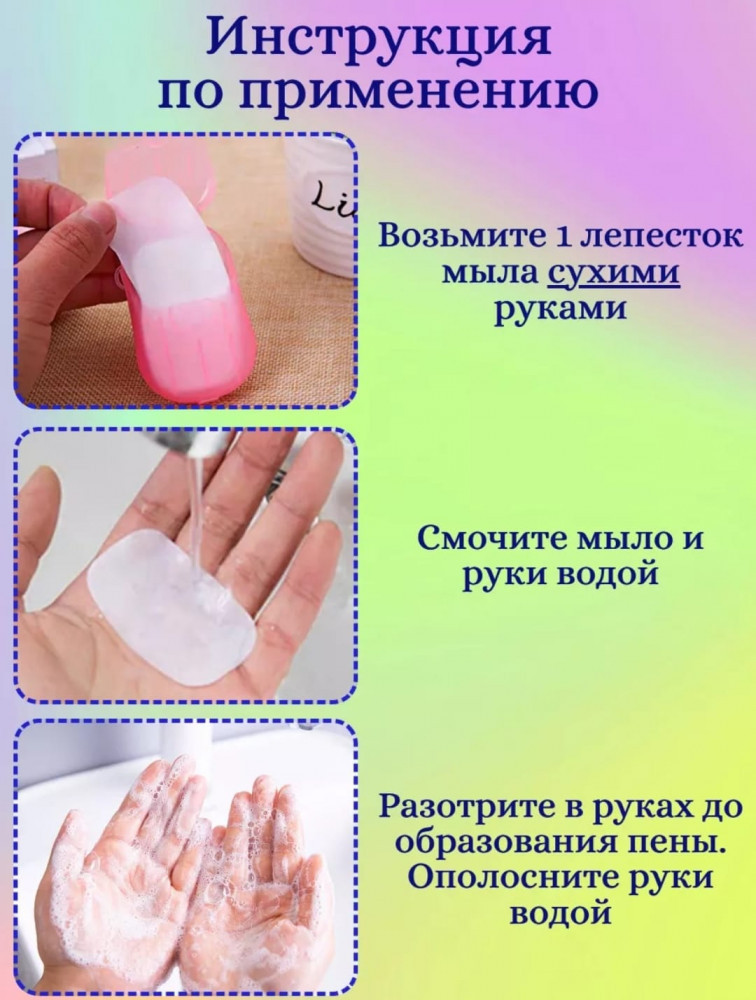 • листовое мыло — компактные, растворимые в воде мыльные листы, которые удобно носить с собой. Отлично подходят для мытья рук в любых условиях.