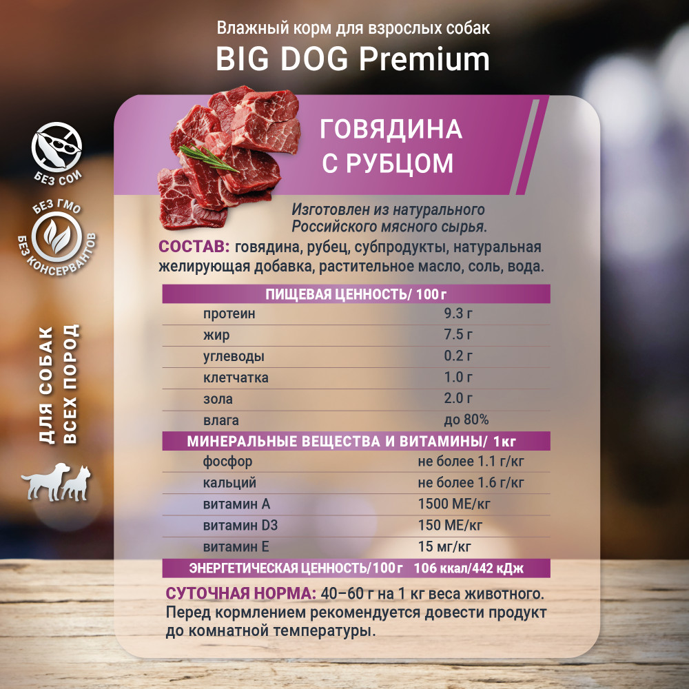 Зоогурман Корм влажный для взрослых собак «Говядина с рубцом»