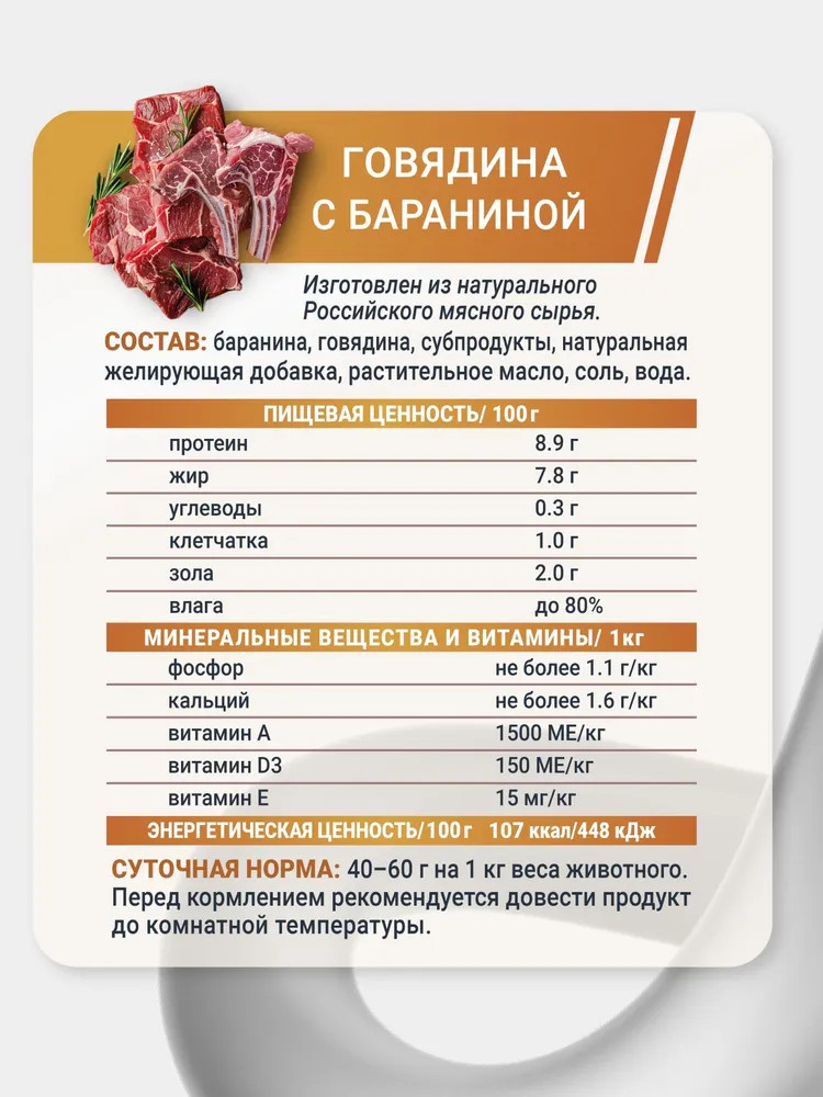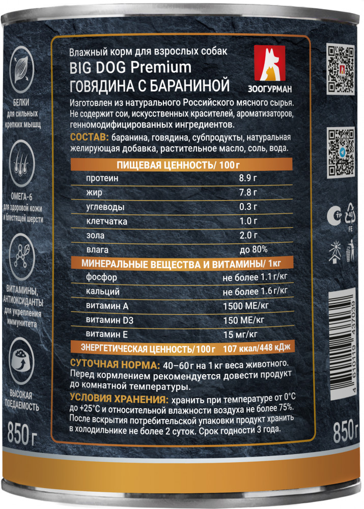 Зоогурман Корм влажный для взрослых собак «Говядина с бараниной»