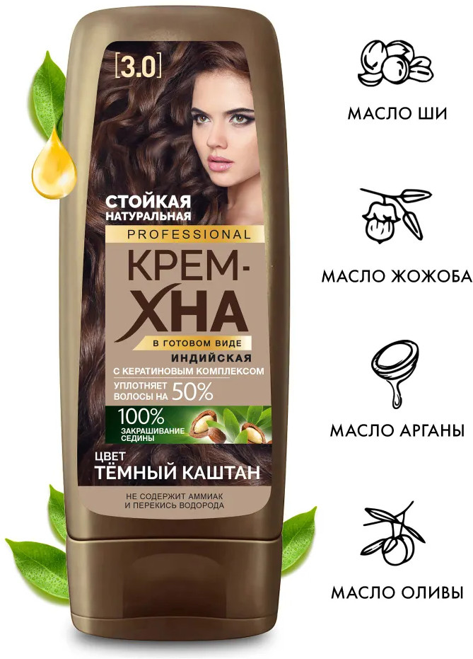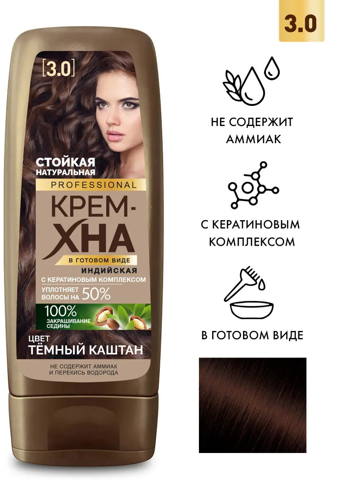 Фитокосметик Крем-хна для волос индийская, оттенок Тёмный каштан
