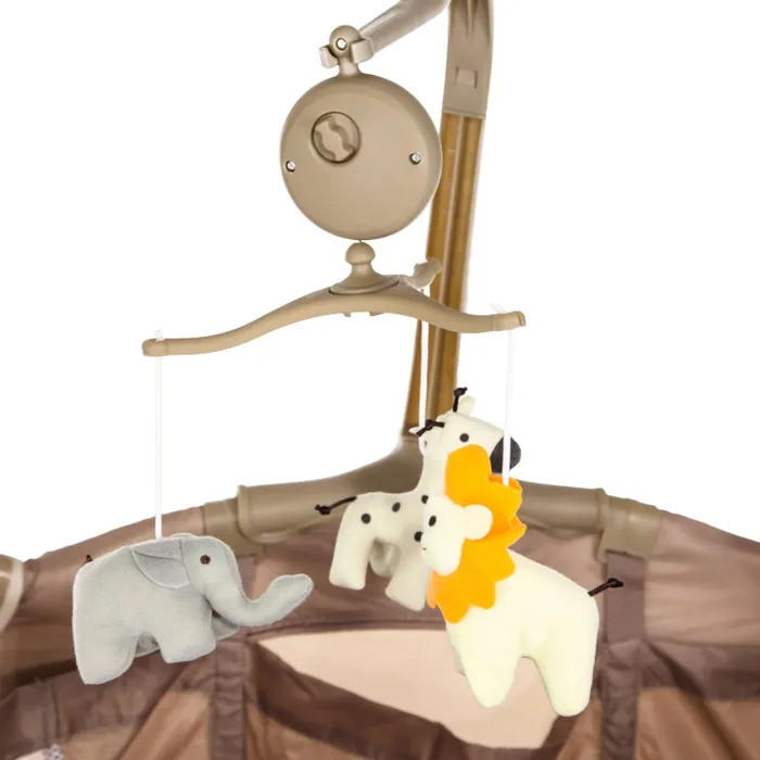 Матрас можно устанавливать на нижнем уровне для игры и на верхнем уровне (на липучках) — для непродолжительного сна. Колесики позволяют перемещать манеж-кроватку по дому. Дополнительные опорные ножки по центру. Все углы и опасные для ребенка поверхности защищены специальными антитравматическими накладками. Складная конструкция, удобная для транспортировки.