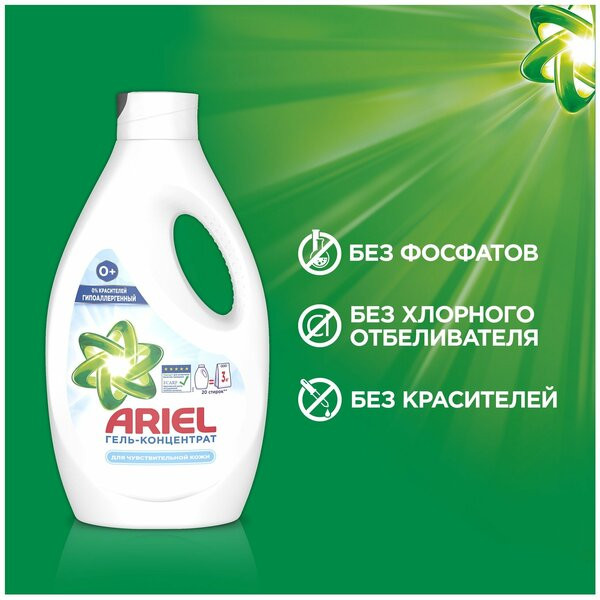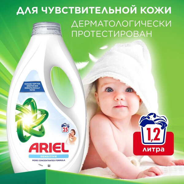 • оказывает чрезвычайно мягкое действие на чувствительную кожу: мягкое предложение для чувствительной кожи, беспощадное к пятнам это именно то, что вы ожидаете от Ariel;