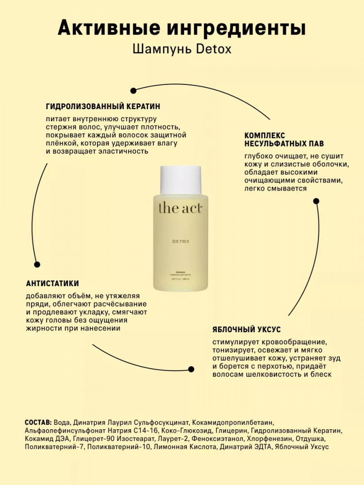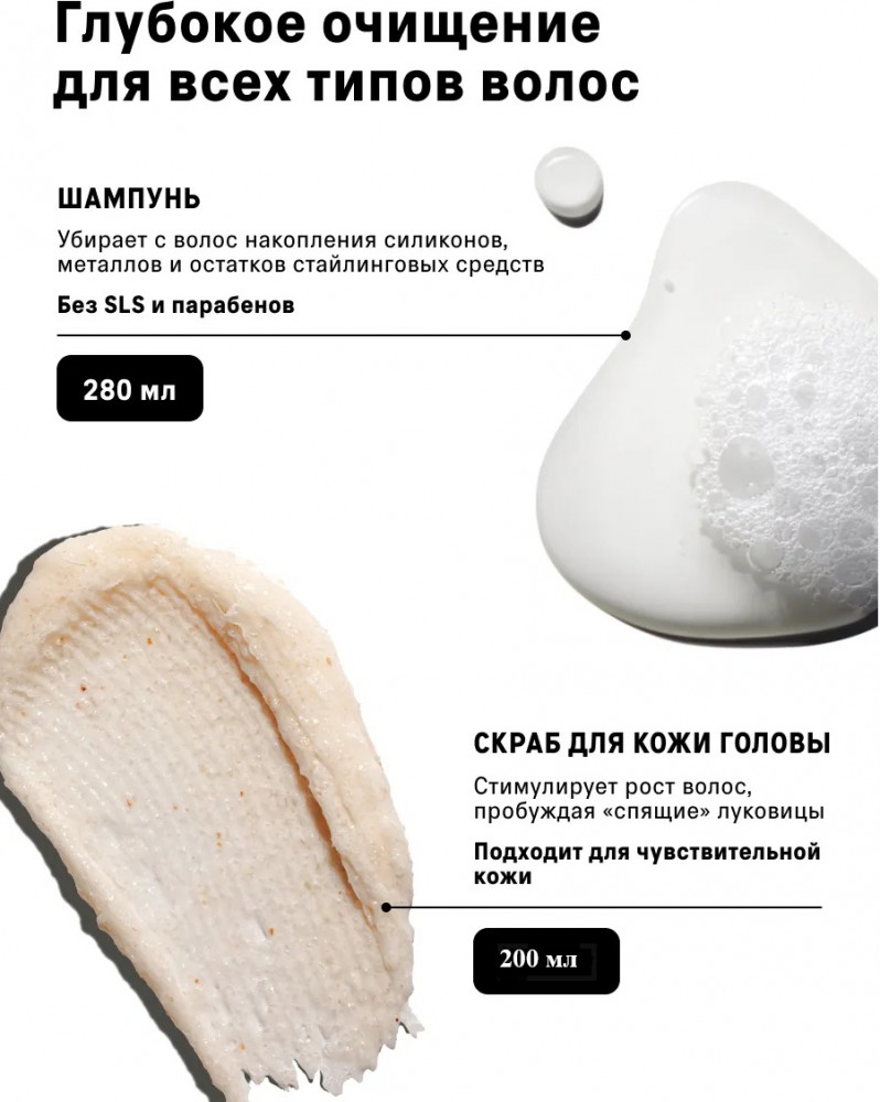 Комплексный подход к чистоте и здоровью волос и кожи головы. Шампунь с яблочным уксусом очищает волосы и удаляет излишки себума, стайлинга, минералы жёсткой воды. Скраб для кожи головы очищает, освежает и выравнивает поверхность кожи головы и волос. Набор подходит для всех типов и текстур волос, в том числе и для окрашенных. |