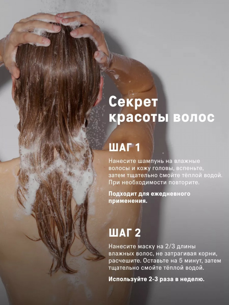 Шампунь: вода, Кокамидопропилбетаин, Лаурил Глюкозид, Гидролат Розы, Натрия Кокоил Изетионат, Гидролат Липы, Гидролат Крапивы, Глицерин, Полисорбат 80, Протеины Пшеницы, Натрия Цитрат, Поликватериум-7, Бензиловый Спирт, Этилгексилглицерин, Ниацинамид, Аллантоин, Сок Алоэ Вера, Пантенол, Экстракт Розы, Экстракт Центеллы Азиатской, Экстракт Шиповника, Экстракт Граната, Экстракт Рожкового Дерева, Кукурузный Крахмал, Натрия Бензоат, Калия Сорбат, Гуар гидроксипропилтримония Хлорид, Пропиленгликоль, Протеины Ржи, Овса, Гиалуронат Натрия, Отдушка, Токоферола Ацетат, Лимонная Кислота