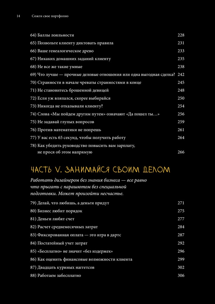 Эта книга даст гораздо больше для успешной карьеры в дизайне, чем профильное дизайнерское образование или впечатляющее портфолио. Вы познакомитесь с реалиями дизайнерского бизнеса, существующими практиками и неписаными правилами ведения дел, о которых большинство дизайнеров, фотографов и представителей других творческих профессий узнают, только окунувшись в реальную работу. |