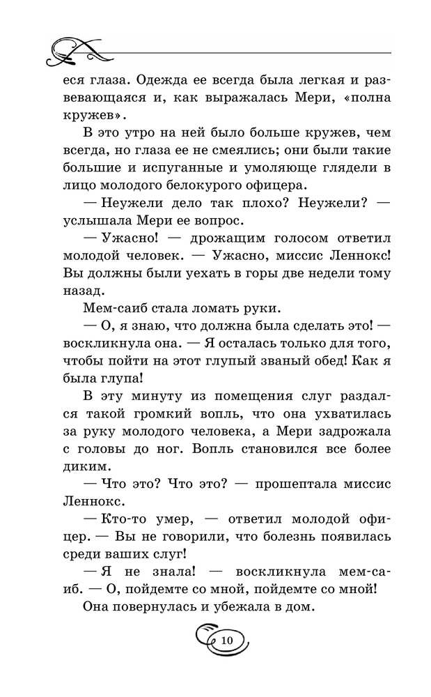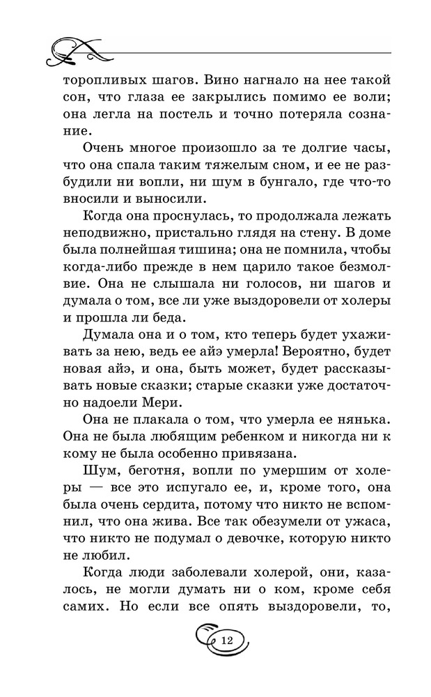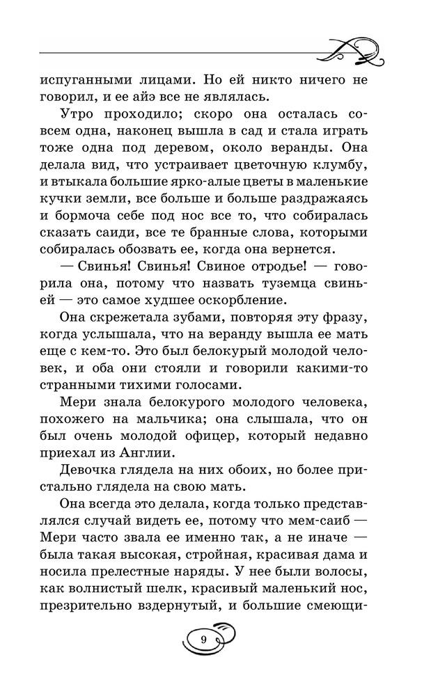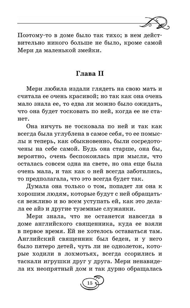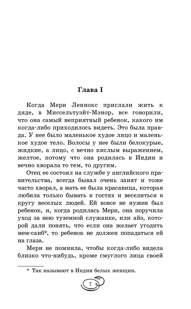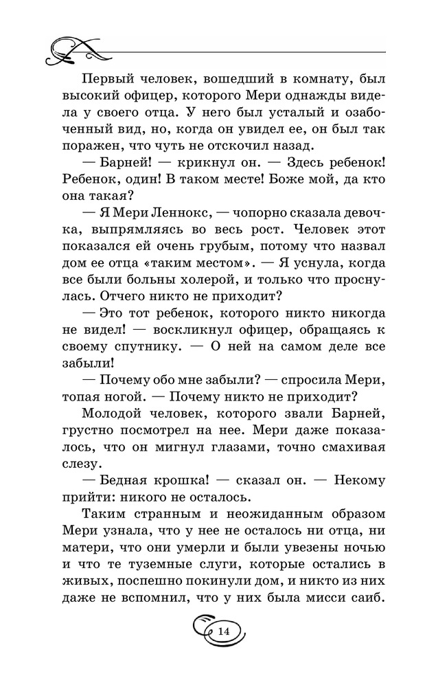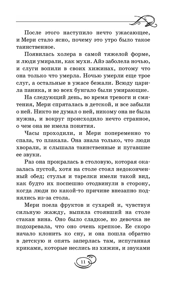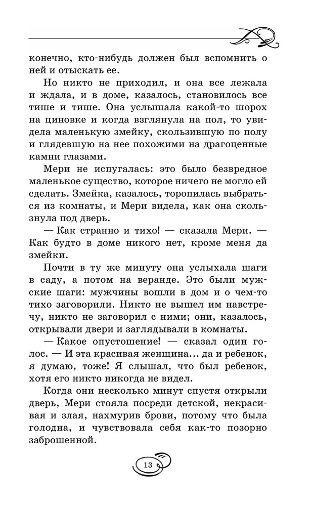Таинственный садВ данный момент этот товар отсутствует в продаже. Возможно, у нас найдется аналогичный или похожий товар здесь. Серия: Вся детская классика Мэри Леннокс была очень неприятным ребенком, даже отвратительным. Ее извечные капризы и постоянно кислое выражение лица, несомненно, не прибавляли ей привлекательности в глазах окружающих. В девять лет, после смерти родителей, ей пришлось перебраться в поместье своего дяди, где она обнаруживает заброшенный сад, а также сталкивается с таинственным, непонятным поведением окружающих. От Мери явно что-то пытаются скрыть... Однако живое воображение и любознательность девочки постоянно, одну за другой, раскрывают перед ней все тайны, скрытые в стенах ее нового дома, а также помогают обрести настоящих друзей. |