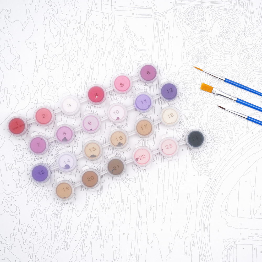 Внутри набора вы найдете холст с нанесенным контуром будущего шедевра. Каждый участок холста имеет свой номер, соответствующий номеру краски в специальной баночке. Вам остается лишь раскрасить каждый сектор, используя ту краску, которая указана для данного номера. Этот процесс не требует никаких дополнительных действий, таких как смешивание или разбавление красок. Рисование по номерам — это простой и увлекательный способ приобщиться к миру искусства. Все оттенки красок тщательно подобраны. Контуры на холсте разработаны опытными художниками и дизайнерами. Это означает, что процесс рисования будет не только увлекательным, но и простым. Набор подходит для людей любого возраста, даже дети смогут с легкостью создать свою картину, ведь он не требует никаких специальных художественных навыков. Картина по номерам на холсте станет отличным подарком для близких или прекрасным элементом декора для вашего дома.
