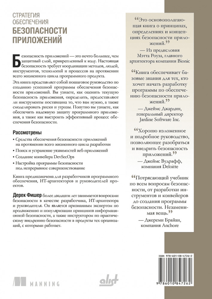 💳 Оплатить за товар можно при получении 🇰🇿 Есть бесплатная доставка по Казахстану 🎁 Копите бонусы с каждой покупки Серия: Внесерийные книги Эта книга представляет собой пошаговое руководство по созданию успешной программы обеспечения безопасности приложений. Вы узнаете, как оценить текущую безопасность приложения, определить, предоставляют ли инструменты поставщика то, что вам нужно, а также смоделировать риски и угрозы. Попутно вы узнаете, как обеспечить надежную защиту программного приложения, а также как выстроить эффективный процесс обеспечения безопасности. |