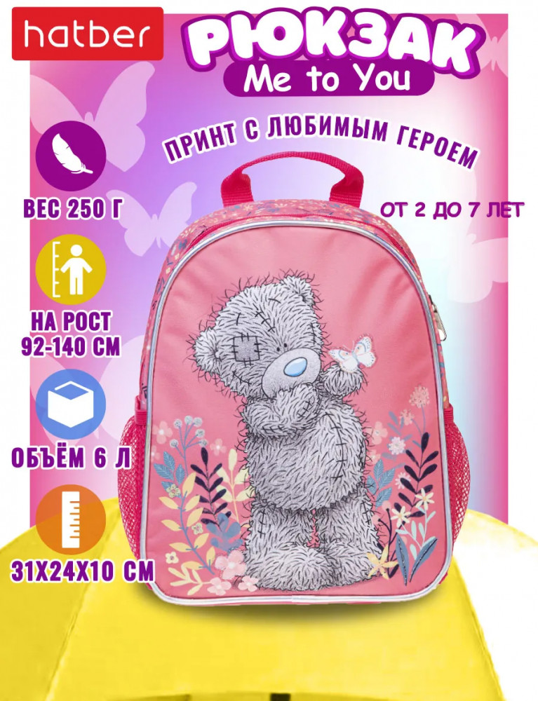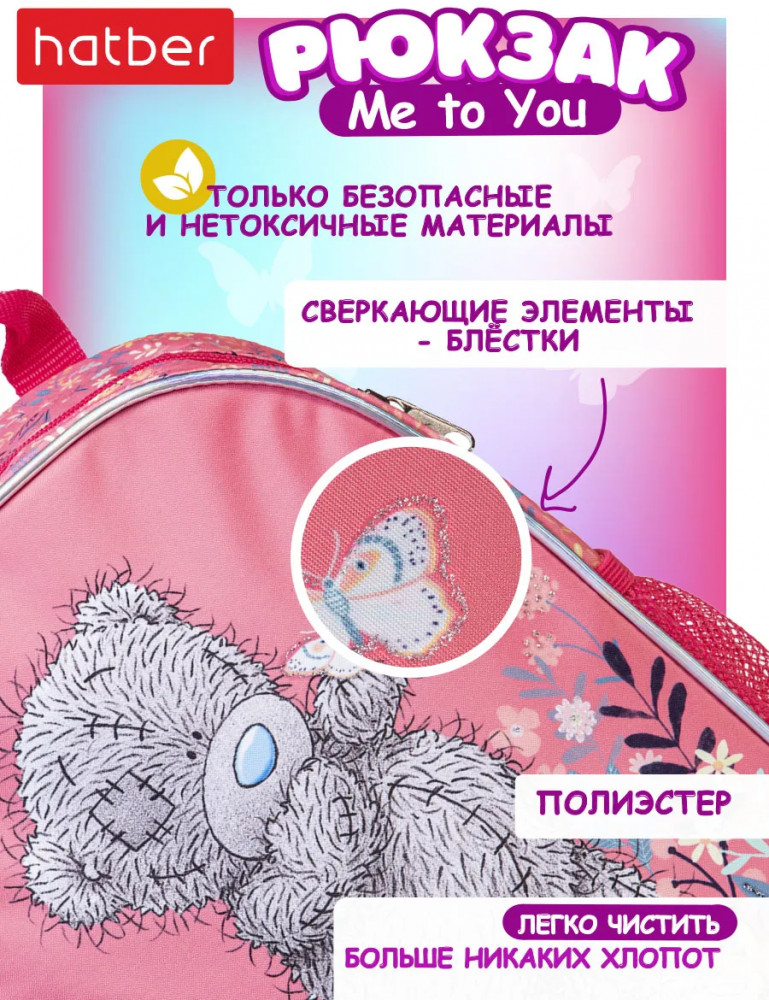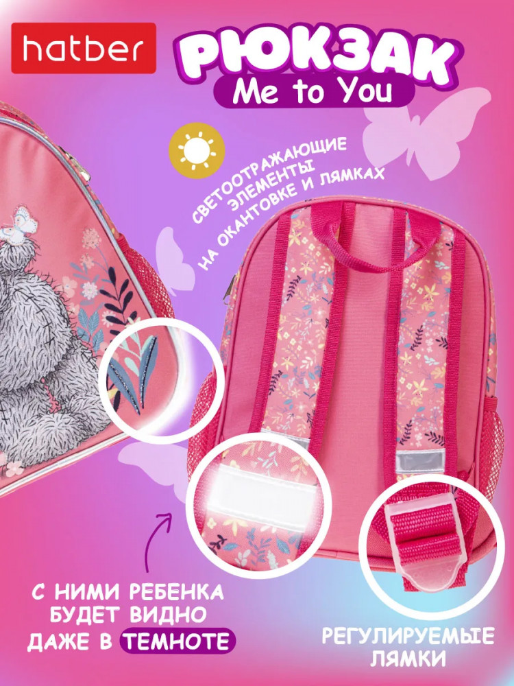 Рюкзачок для девочки — это не просто детская сумочка, а настоящий помощник в ежедневных делах вашей малышки. Эргономичная вентилируемая спинка и мягкие регулируемые лямки обеспечивают комфорт даже при длительном ношении. Светоотражающие элементы добавляют безопасности при прогулках в темное время суток. Этот рюкзак для девочек — настоящий помощник в повседневной жизни и весьма универсален: идеально подходит для прогулок, путешествий, поездок в машину, самолет или на дачу. Он не только функциональный, но и стильный с изображением любимого героя девчонок Мишкой Тедди Me to You— станет любимым аксессуаром вашей маленькой принцессы. Подарите своей малышке легкий и удобный рюкзачок для маленькой модницы!