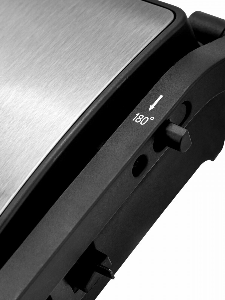 Открытие крышки гриля возможно на 105° — 180°, что позволяет легко регулировать угол наклона и направление пара.
