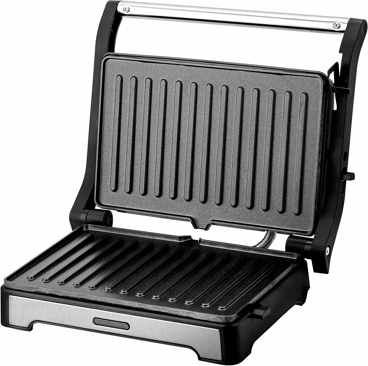 Нагревательные элементы расположены в верхней и нижней частях гриля, что обеспечивает равномерное распределение тепла по всей поверхности. Температура нагрева пластин может достигать 195°, что позволяет готовить разнообразные блюда, от мяса и рыбы до овощей и фруктов. Корпус гриля выполнен из высококачественного пластика, декорированного нержавеющей сталью. Это придает устройству стильный и современный вид, а также обеспечивает долговечность и надежность в использовании.