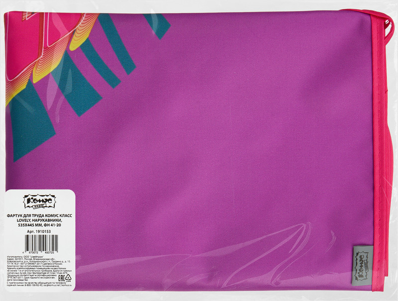 Фартук для труда — незаменимый атрибут при работе на уроках труда. Такая специальная одежда позволит сохранить школьную форму в чистоте и защитит ее от внешнего воздействия — пыли, грязи, капель и т. д. Фартук имеет специальные нарукавники для сбережения рукавов основной одежды в чистоте и сохранности. Фартук сделан из полиэстера. Фартук для труда — отличный выбор не только для уроков труда, но и для субботников. С ним основная одежда всегда будет оставаться чистой, а работа будет проходить без лишнего дискомфорта и отвлечений. Размер изделия — 53.5×44.5 см.