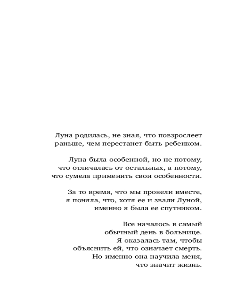 Серия: Книги, о которых говорят 13-летняя Луна — совершенно особенная девочка. Одни люди ее обожают, другие высмеивают. Волнует ли ее это? Конечно. Останавливает ли? Ну уж нет! Она отчаянно борется с обстоятельствами, в которые ее поместила жизнь, что-то настойчиво ищет и ведет никому не понятные записи из цифр. Ее психолог поначалу принимает такое поведение за избегание, но довольно скоро оказывается, что это Луну избегали ее предыдущие психологи — ведь не все психологи готовы ко всем видам ответов. И тогда она решает во что бы то ни стало выслушать девочку и постараться поверить ей, чтобы разгадать тайну, которую скрывает Луна. |