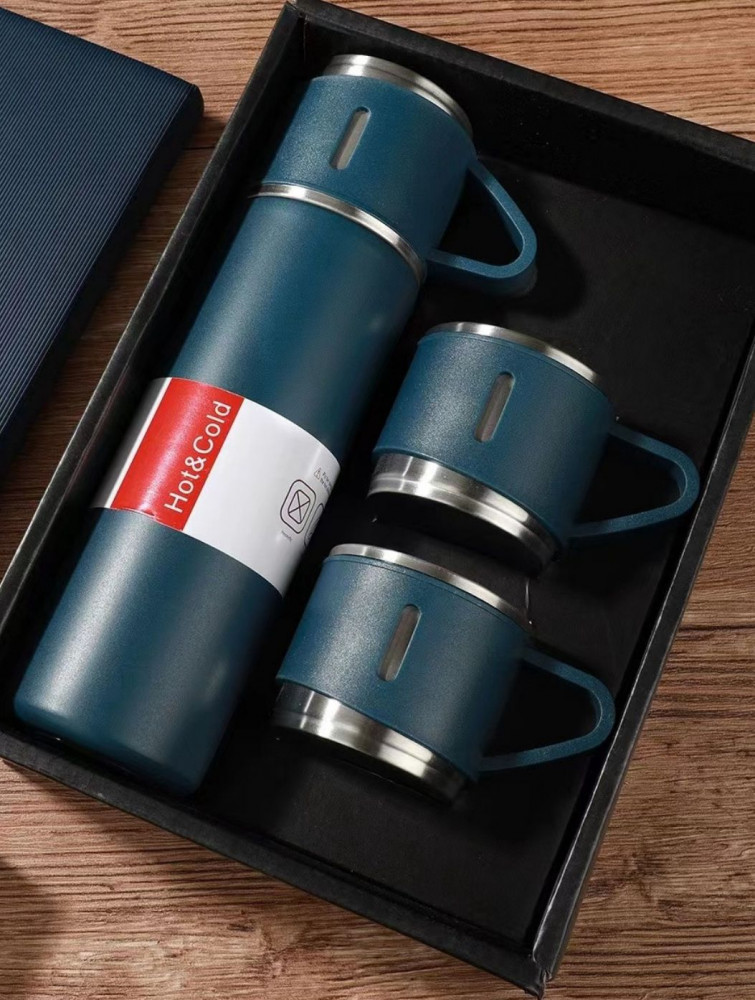 Термос и 3 кружки в подарочной коробке. Термос — это всегда отличный подарок. Термос объемом 500 мл и кружки изготовлены из нержавеющей стали, которая не вступает в реакцию с содержимым термоса и не изменяет вкусовых качеств напитка и хорошо удерживает тепло. Благодаря герметичной крышке, термос не пропускает жидкость. Идеален для пикника, рыбалки, охоты, прогулки, похода на тренировку или школу, поездки на дачу или на работу. Подходит для автомобильных держателей. Универсальный термос имеет специальную конструкцию, которая экономит место, крышка используется как кружка. Термос предназначен для хранения горячих и холодных напитков. Пробка с кнопкой удобна в использовании и даёт возможность налить напиток, не откручивая пробку. Термос легко разбирается и моется. Термос станет идеальным подарком на любой праздник. Подарок мужчине, женщине, маме, папе, коллеге, другу, близком человеку. Упакован в коробку и фирменный подарочный пакет. |
