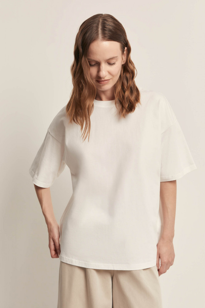 Универсальная однотонная футболка из мягкого и дышащего хлопка. Натуральный материал приятно ощущается на коже, имеет нежный блеск, хорошо впитывает и быстро испаряет влагу. Свободный крой и округлый вырез обеспечат идеальную посадку, футболка подойдет для повседневных прогулок или активного отдыха.