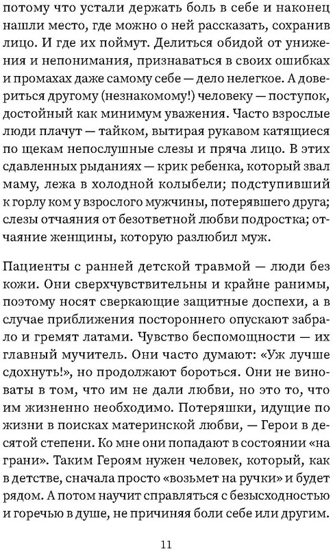 Серия: Сам себе психолог Книга Марии Осиповой — медицинского психолога, специалиста по детско-родительским отношениям — это глубокое исследование природы ранних психоэмоциональных травм и их влияния на взрослую жизнь человека. Издание будет интересно широкому кругу практикующих психотерапевтов, работающих с восстановлением привязанности и травмами развития. Особо ценными являются реальные примеры из клинической практики автора, а также пошаговые алгоритмы работы. Книга способствует лучшему пониманию динамики посттравматического поведения, механизмов защиты и способов бережного сопровождения клиента на пути к восстановлению целостности. |