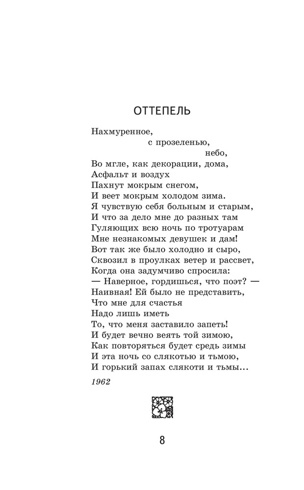 Книга замечательная, сборник включает в себя известные стихи поэта. Качество книги тоже порадовало - и бумага, и переплет, и цена. Спасибо, Flip!