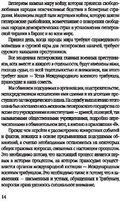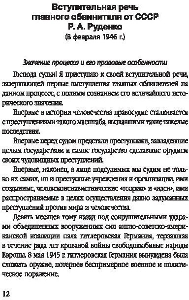 Мораль людоедов. Обвинительные речи на Нюрнбергском процессеВ данный момент этот товар отсутствует в продаже. Возможно, у нас найдется аналогичный или похожий товар здесь. С 20 ноября 1945 г. по 1 октября 1946 г. в Нюрнберге проходил процесс по делу гитлеровских военных преступников. Главным обвинителем от СССР выступил Р. А. Руденко, который, в частности, говорил: «Когда банда оказывается в центре государственного аппарата, когда банда совершает тягчайшие международные преступления, когда цветущие области превращались в зоны пустыни, — это было дело их рук, их подстрекательства, их руководства. Подсудимые годами отравляли совесть и разум целого поколения немцев, воспитывая в них мораль людоедов и алчность грабителей». В своих речах он показал, как действовал фашистский государственный аппарат, включая правительственные, военные, пропагандистские структуры, особое внимание уделив нападению гитлеровской Германии на СССР. Р.А. Руденко убедительно доказал, что это не был «превентивный удар», как утверждал Гитлер, но прямая агрессия, направленная на захват чужих территорий. |