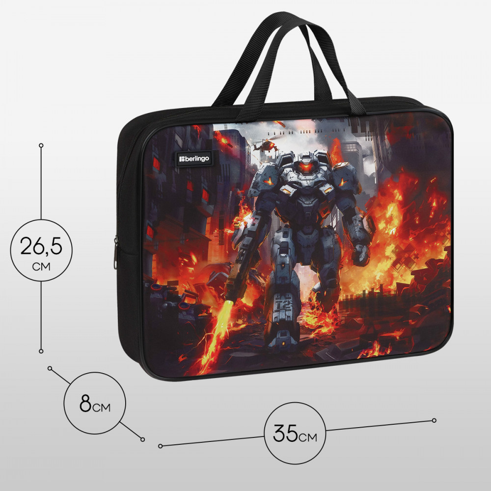 Серия: Battle For The Future Папка с ручками на молнии для тетрадей Berlingo формата А4 станет стильным помощником в учёбе, предназначена для хранения документов. Изделие размера 350×265×80 мм имеет одно отделение и карман внутри. Застежка-молния сверху надежно защищает содержимое от грязи и влаги. Наличие ручек обеспечивает удобную транспортировку. Папка предназначена для тетрадей, альбомов и прочих канцелярских принадлежностей, имеет увеличенную ширину торцевой стороны, что позволяет вместить все необходимое. |