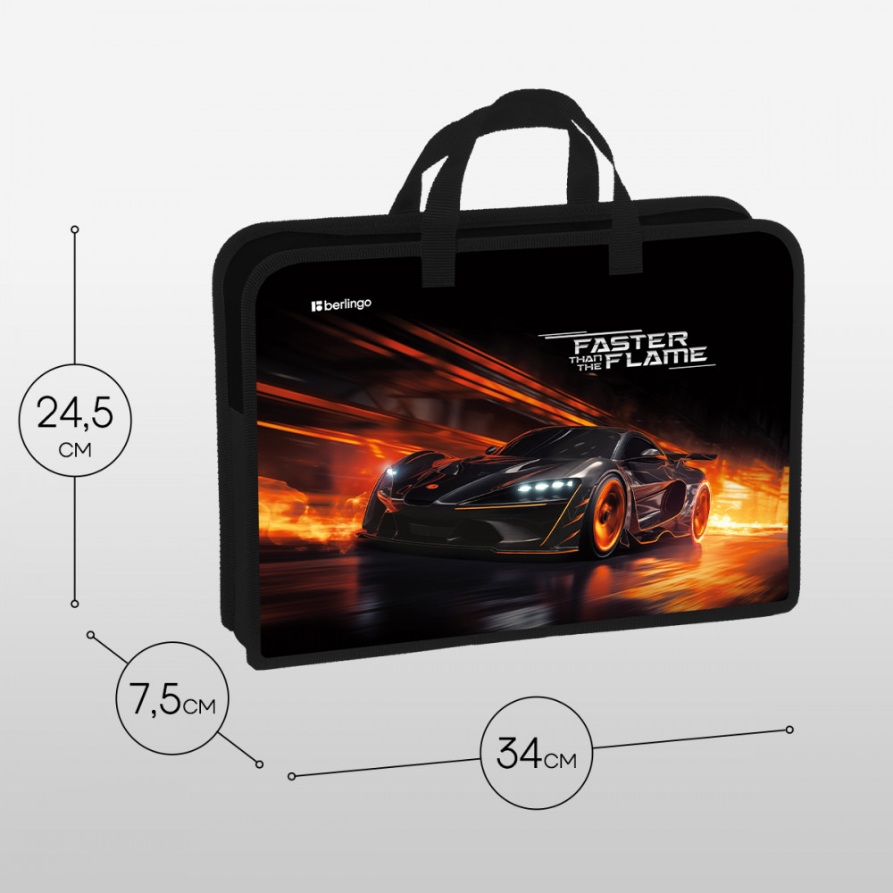 Berlingo Папка с ручками «Faster Than The Flame»В данный момент этот товар отсутствует в продаже. Возможно, у нас найдется аналогичный или похожий товар здесь. Серия: Faster Than The Flame Школьная папка Berlingo c ручками и одним отделением поможет поддерживать аккуратный внешний вид тетрадей, альбомов и учебных пособий. Формат изделия — А4 (340×245×75 мм). Папка изготовлена из высококачественного пластика, который защищает содержимое от влаги, грязи и замятия. Края укреплены контрастной тканевой окантовкой. Застёжка-молния расположена по верхнему краю изделия. Наличие ручек из тесьмы обеспечивает удобную транспортировку. |