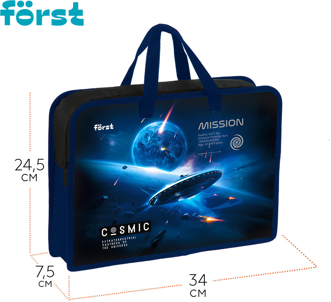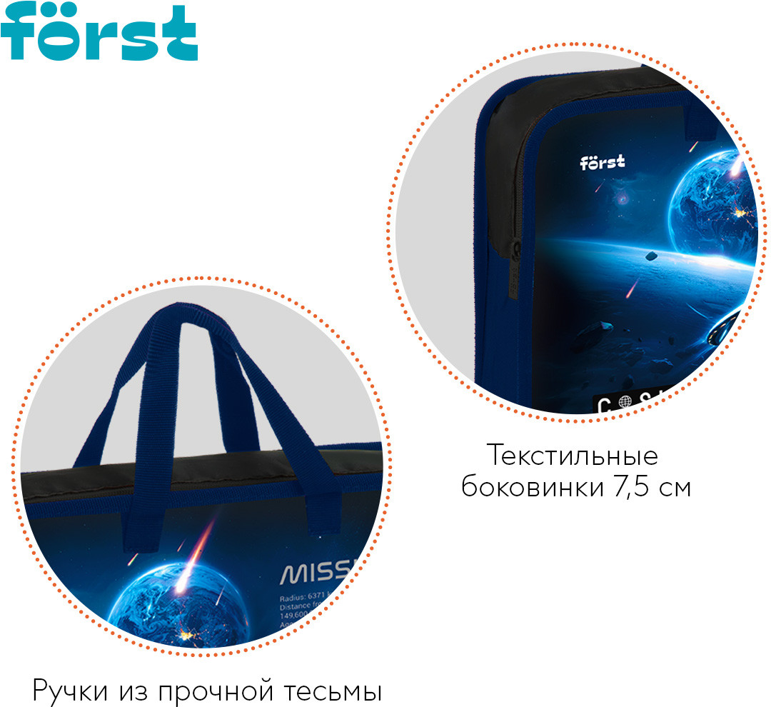 Forst Папка с ручками «Cosmic»В данный момент этот товар отсутствует в продаже. Возможно, у нас найдется аналогичный или похожий товар здесь. Серия: Cosmic Школьная папка Först c ручками и одним отделением поможет поддерживать аккуратный внешний вид тетрадей, альбомов и учебных пособий. Формат изделия — А4 (340×245×75 мм). Благодаря увеличенной ширине в одно отделение поместится всё необходимое, в том числе и стакан-непроливайка. Папка изготовлена из качественного пластика, который защищает содержимое от влаги, грязи и замятия. Края укреплены тканевой окантовкой. Застёжка-молния расположена по верхнему краю изделия. Ручки сделаны из тесьмы, поэтому отличаются прочностью и не порвутся в неподходящий момент. |