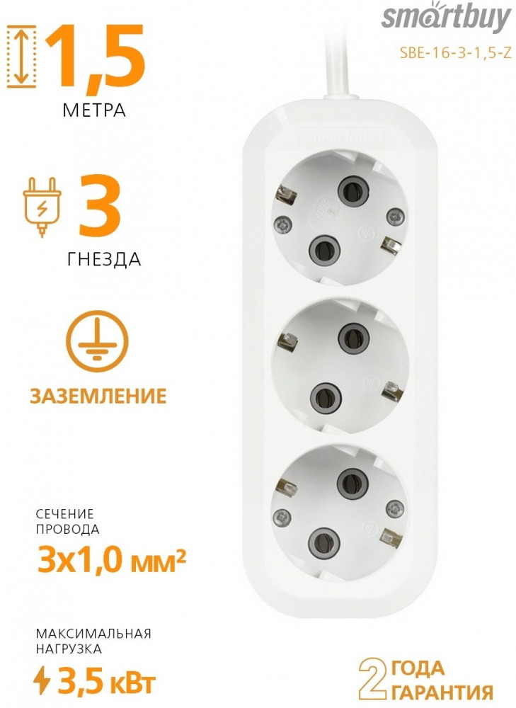 Smartbuy Удлинитель SBE-16-3-1,5-Z