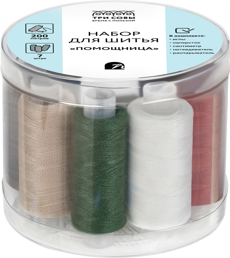 Набор для шитья «Помощница» от бренда «Три совы» универсален. Он подходит для рукоделия, ремонта и пошива одежды. |