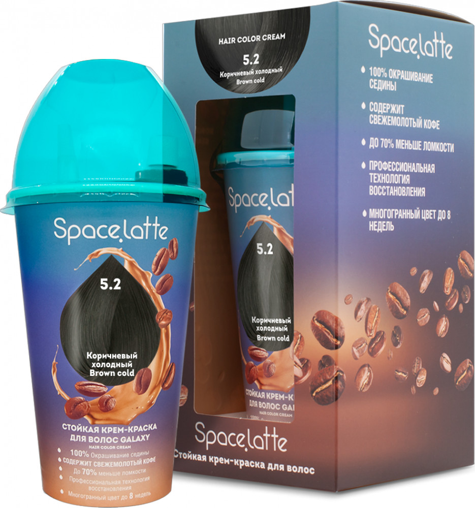 Space.latte Крем-краска для волос стойкая, оттенок 5.2 Коричневый холодный