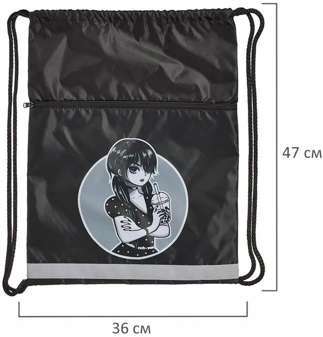 Серия: Аниме Мешок для обуви Комус Класс Аниме Готик. Имеет одно вместительное отделение и дополнительный карман на молнии. Материал — полиэстер. Размер: 360×470 мм. Цвет: черный. |