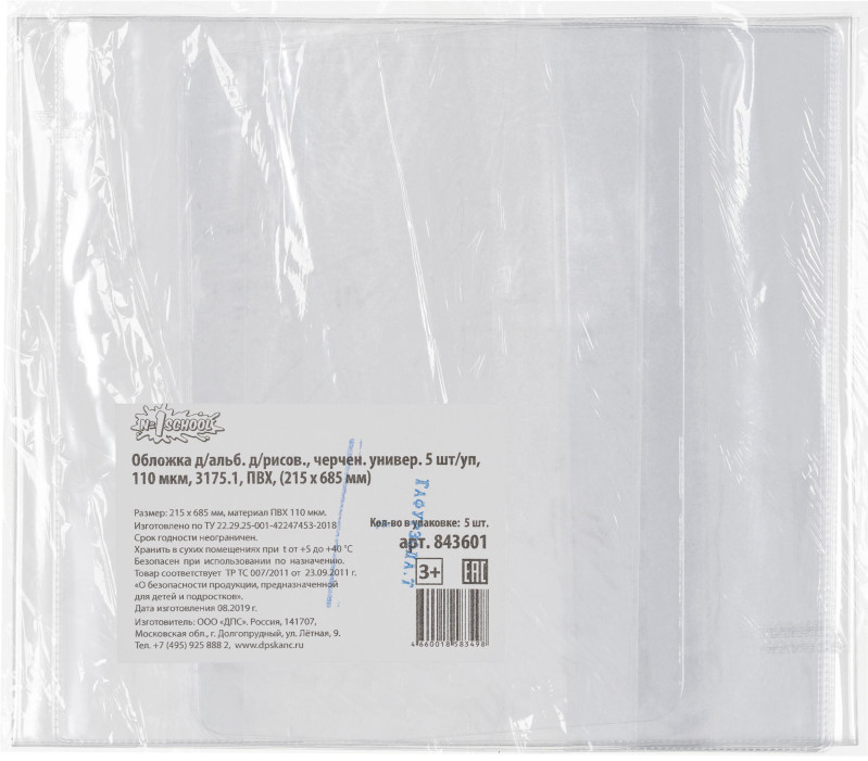 Набор обложек для альбомов для рисования и черчения Комус Класс (№ 1 School) 215×685 мм 110 мкм (5 штук в упаковке) Набор включает 5 обложек размером 215×685 мм, изготовленных из прозрачного ПВХ плотностью 110 мкм. Эти обложки предназначены для защиты альбомов от механических повреждений, пыли и грязи. Гладкая глянцевая поверхность придаёт обложкам аккуратный и привлекательный внешний вид, а также облегчает уход за ними. Второй клапан обложек не фиксирован, что позволяет использовать их для альбомов различных размеров. Слегка зауженный край легко входит в клапан, регулируя его ширину и плотно облегая альбом. Это делает набор обложек универсальным и удобным в использовании для альбомов разной толщины.