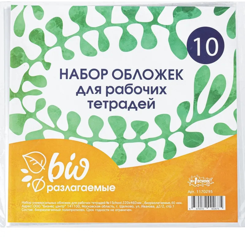 Набор обложек предназначен для защиты тетрадей и дневников от загрязнений, влаги и механических повреждений. Подходит для школьных принадлежностей нестандартного формата и помогает сохранить их аккуратный внешний вид. Изготовлены из прозрачного полипропилена плотностью 60 мкм. Материал экологичен и биоразлагаем, устойчив к износу. Глянцевая поверхность сохраняет читаемость текста на оригинальной обложке. Размер каждой обложки составляет 220×460 мм. Благодаря наличию регулируемого по ширине второго клапана, обложки удобно использовать с дневниками и тетрадями разной ширины. В комплекте 10 штук |