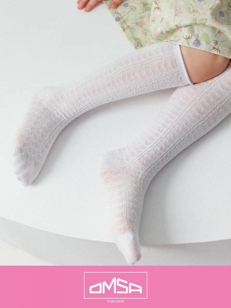 Гольфы детские для девочек с ажурным рисунком в виде сердечек и декоративными пикотами по краю. Выполнены из мягкого хлопка с добавлением полиамида и эластана. Материал дышит, приятен на ощупь и подходит для чувствительной кожи. Эластичная резинка и плоский шов обеспечивают комфорт при носке. Гольфы хорошо облегают, сохраняют форму и цвет после стирки.