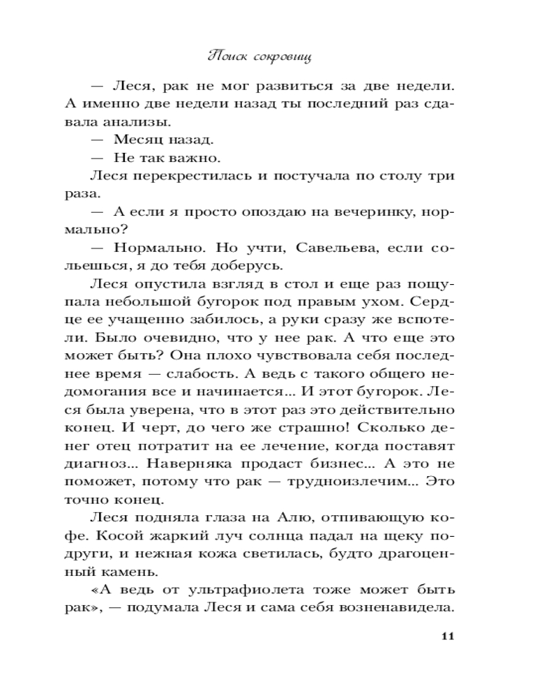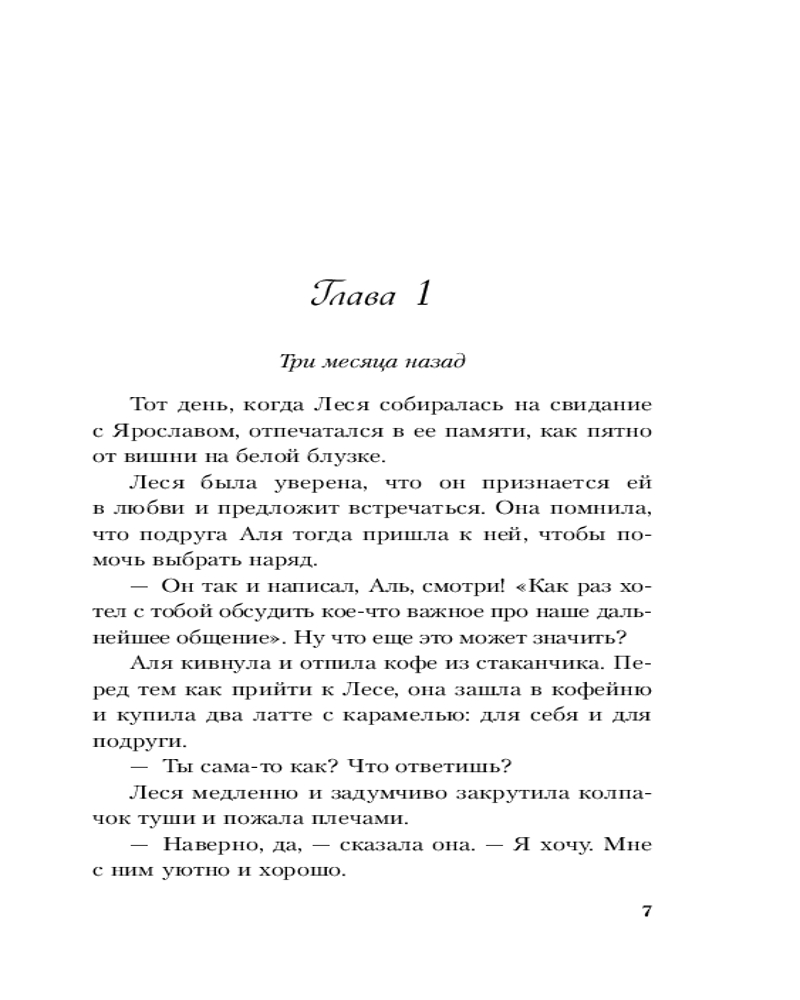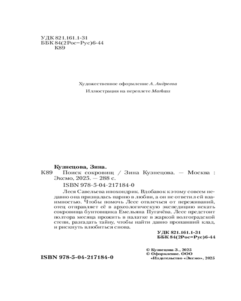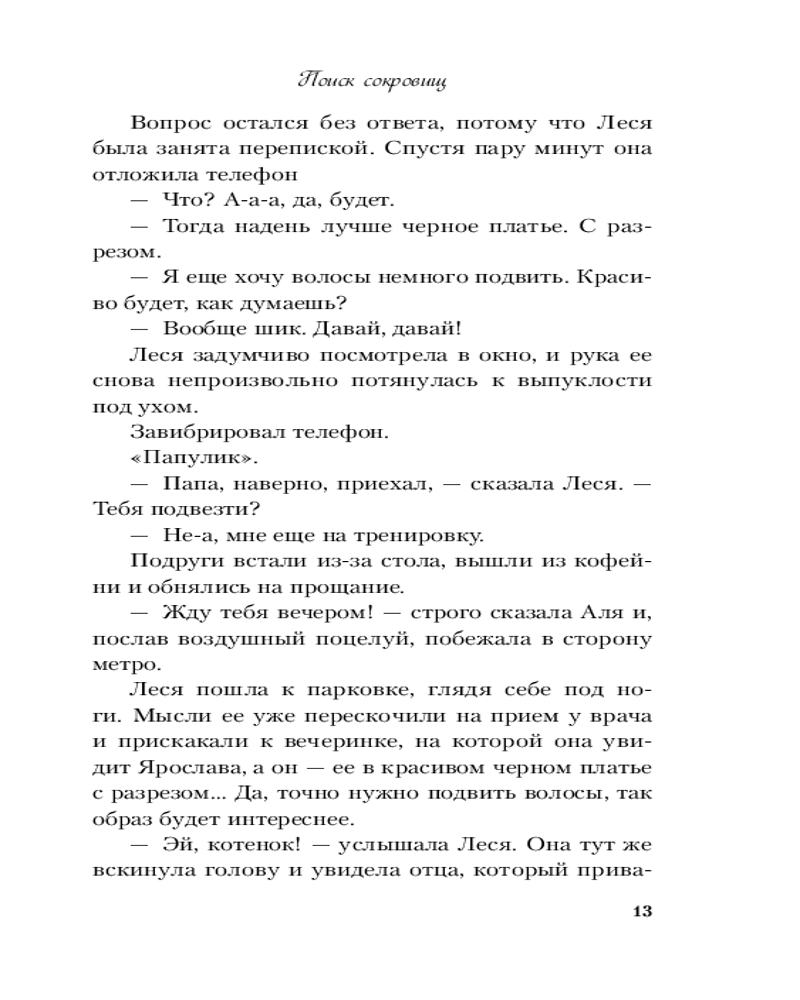 Серия: Young Adult. Инстахит. Романтика В Роминых глазах Леся видела не только улыбку, но и что-то другое, что-то, из-за чего не предлагают остаться друзьями. Леся Савельева ипохондрик. Вдобавок к этому совсем недавно она призналась парню в любви, а он не ответил ей взаимностью. Чтобы помочь Лесе отвлечься от переживаний, отец отправляет ее в археологическую экспедицию искать сокровища бунтовщика Емельяна Пугачева. Лесе предстоит полтора месяца прожить в палатке в жаркой волгоградской степи, разгадать тайну, чтобы найти давно пропавший клад, и рискнуть влюбиться снова. |