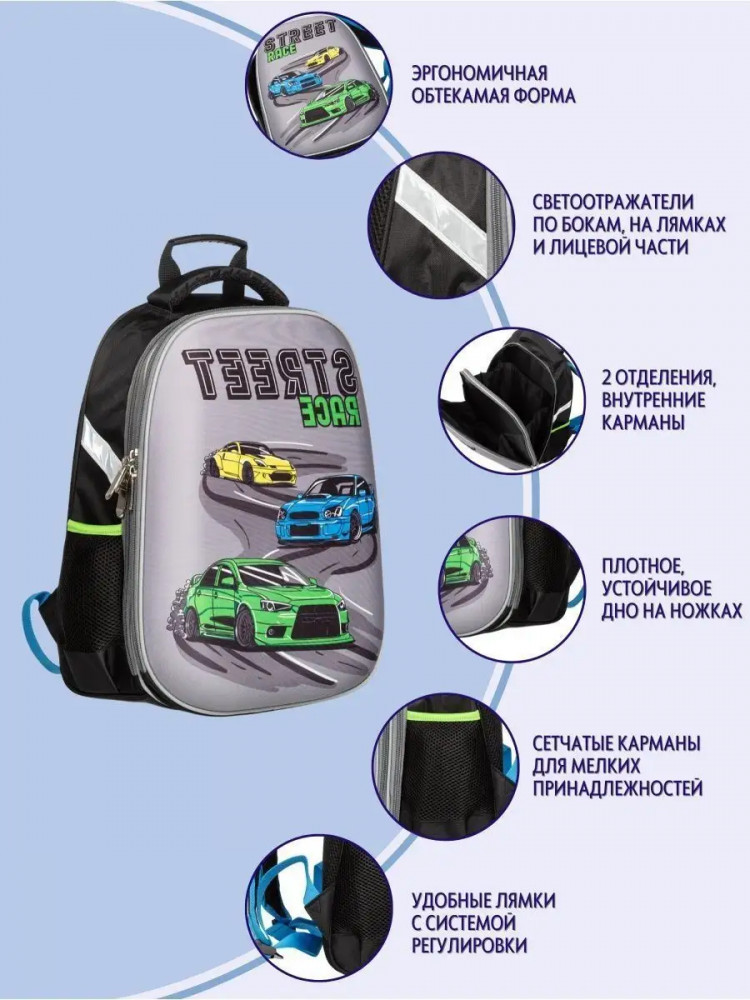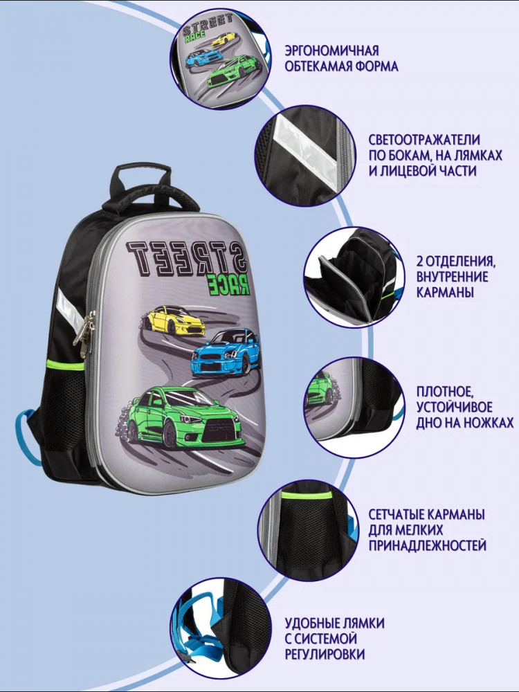 Комус Класс Ранец школьный «Light Street race»-25% +351