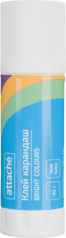 Клей-карандаш Attache Bright Colours предназначен для склеивания картона, бумаги. С помощью клея-карандаша можно зафиксировать текстиль на бумаге. Ткань к ткани лучше не прикреплять, так как клей смывается и отстирывается водой. |
