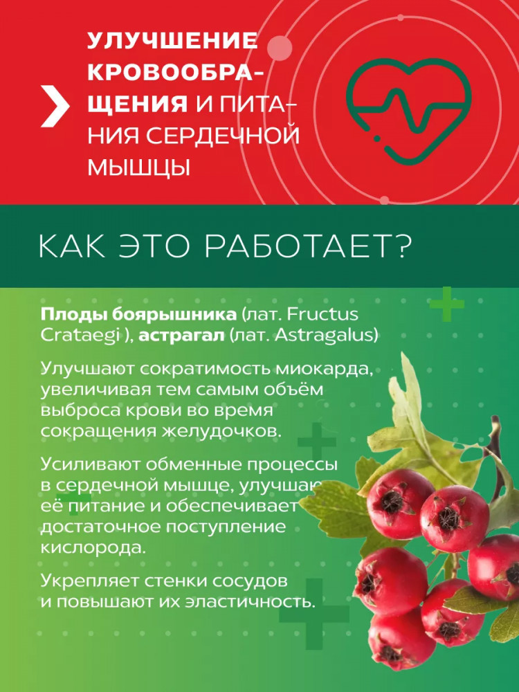 для сердца и сосудов, для повышения тонуса и работоспособности, интенсивное восстанавливающее действие, для кровообращения в сосудах, для укрепления сердечных мышц