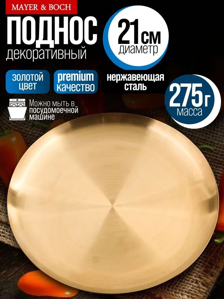 Представьте себе элегантный поднос, сверкающим золотым блеском. Изготовленный из высококачественной нержавеющей стали, он станет прекрасным дополнением к вашей кухне и поможет создать неповторимую атмосферу во время сервировки стола. Его прочная конструкция гарантирует долговечность, а стильный дизайн идеально подходит для презентации самых разных угощений. На этом подносе можно с изыском подать закуски, сладкие десерты, сочные фрукты или напитки. Благодаря практичности и красивому внешнему виду, он станет незаменимым помощником как на повседневной кухне, так и во время торжественных мероприятий.