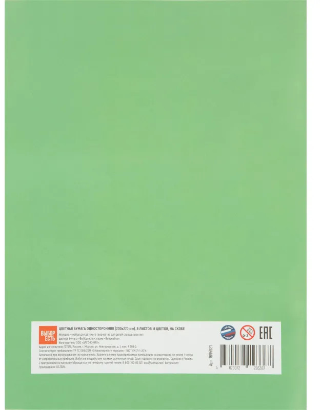 Набор газетной односторонней (8 цветов на 8 листах) цветной бумаги подходит для создания аппликаций, оригами, изготовления поделок. Работа с цветной бумагой способствует развитию мелкой моторики у детей. В наборе листы размером 200×270 мм, плотность — 45 г/кв.м. Обложка выполнена из офсетной бумаги плотностью 65 г/кв.м. Тип крепления — на скрепке. |