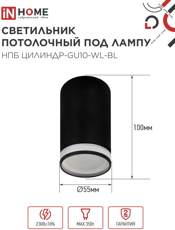 InHome Светильник потолочный под лампу GU10В данный момент этот товар отсутствует в продаже. Возможно, у нас найдется аналогичный или похожий товар здесь. Настенно -потолочные светильники НПБ ЦИЛИНДР-GU10 накладного монтажа под лампу GU10 JCDRC разработаны для точечного освещения помещений и могут быть установлены на натяжные, накладные, оштукатуренные потолки и вертикальные поверхности. Декоративная подсветка визуально расширяет пространство и создает мягкое рассеянное освещение. |