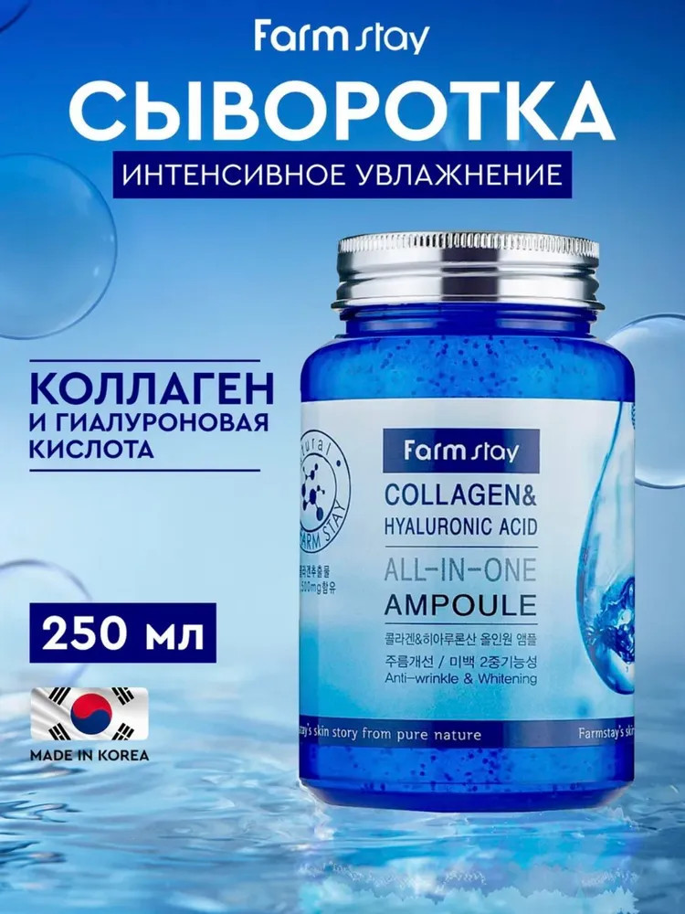 FarmStay Многофункциональная сыворотка для лица с гиалуроновой кислотой и коллагеном «All In One Collagen and Hyaluronic Ampoule»новинка -13%