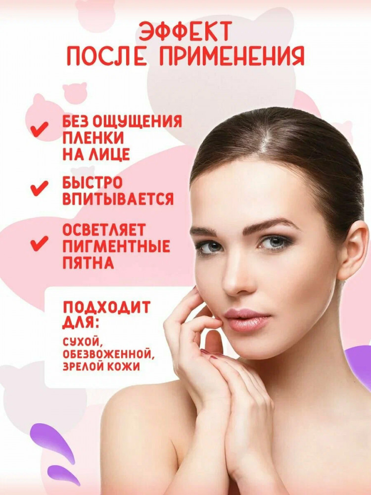 • омолаживающий эффект. Сыворотка активизирует метаболизм и помогает обновить поверхность эпидермиса. Это позволяет уменьшить глубину и выраженность морщины, подтянуть контуры лица, осветлить возрастную пигментацию и улучшить общее состояние кожи;
