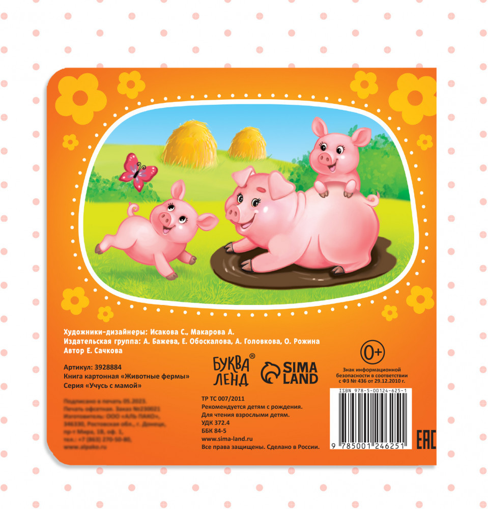Картонная книга с яркими картинками познакомит малыша с животными, которые живут на ферме. Красочные иллюстрации и весёлые стихи помогут ребёнку запомнить повадки и особенности кур, уток, поросят и других обитателей деревни. |