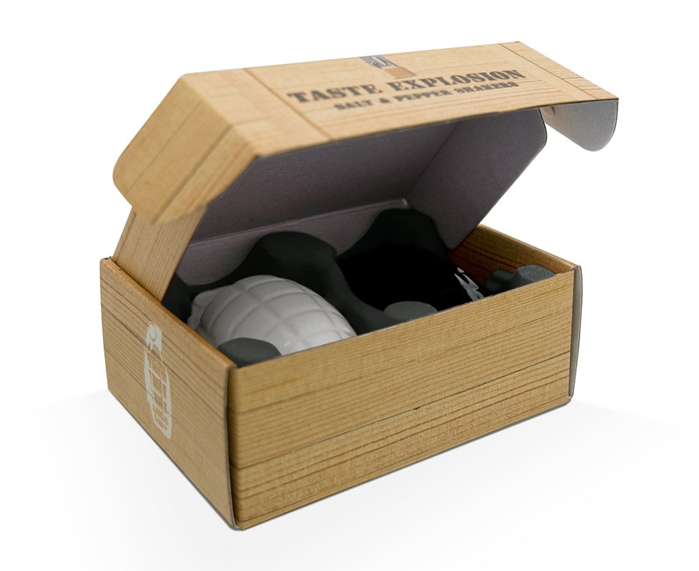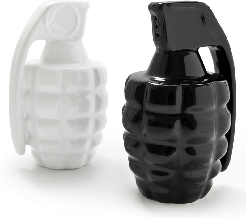Thabto Солонка и перечница «Taste Explosion»В данный момент этот товар отсутствует в продаже. Возможно, у нас найдется аналогичный или похожий товар здесь. Специи, в атаку! Набор из солонки и перечницы для настоящих бойцов. Добавит веселья на вашу кухню: "Передайте-ка мне соль или перец, нет-нет, только не кидайте!" |