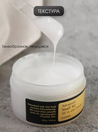 CosRX Увлажняющий, питающий крем на основе улиточного муцина «Advanced Snail 92 All in One Cream»новинка В данный момент этот товар отсутствует в продаже. Возможно, у нас найдется аналогичный или похожий товар здесь. Улиточный крем с высокой концентрацией активных компонентов обеспечивает гипер-увлажнение кожи. Может использоваться сразу после умывания без предварительного применения тонера или лосьона, так как успешно справляется и с функциями этих средств. 92% экстракта муцина улитки обеспечивают полноценный уход за кожей лица, не нарушая ее липидный барьер, не вызывая раздражений и появления аллергии. |